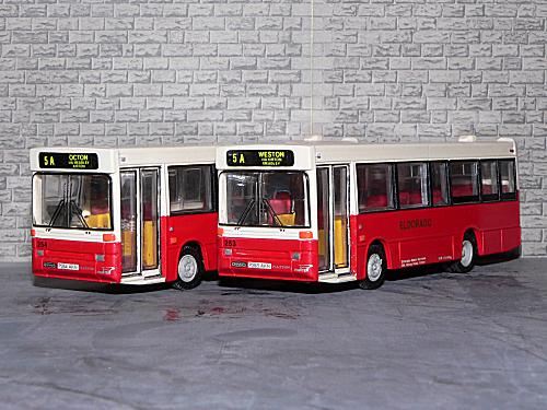 No. 253 (P253 AKN) Dennis Dart 8.5SDL / Plaxton Pointer B31F (1997) alongside No. 254 (P254 AKN) Dennis Dart 8.5SDL / Plaxton Pointer B31F (1997), both withdrawn in 2005.