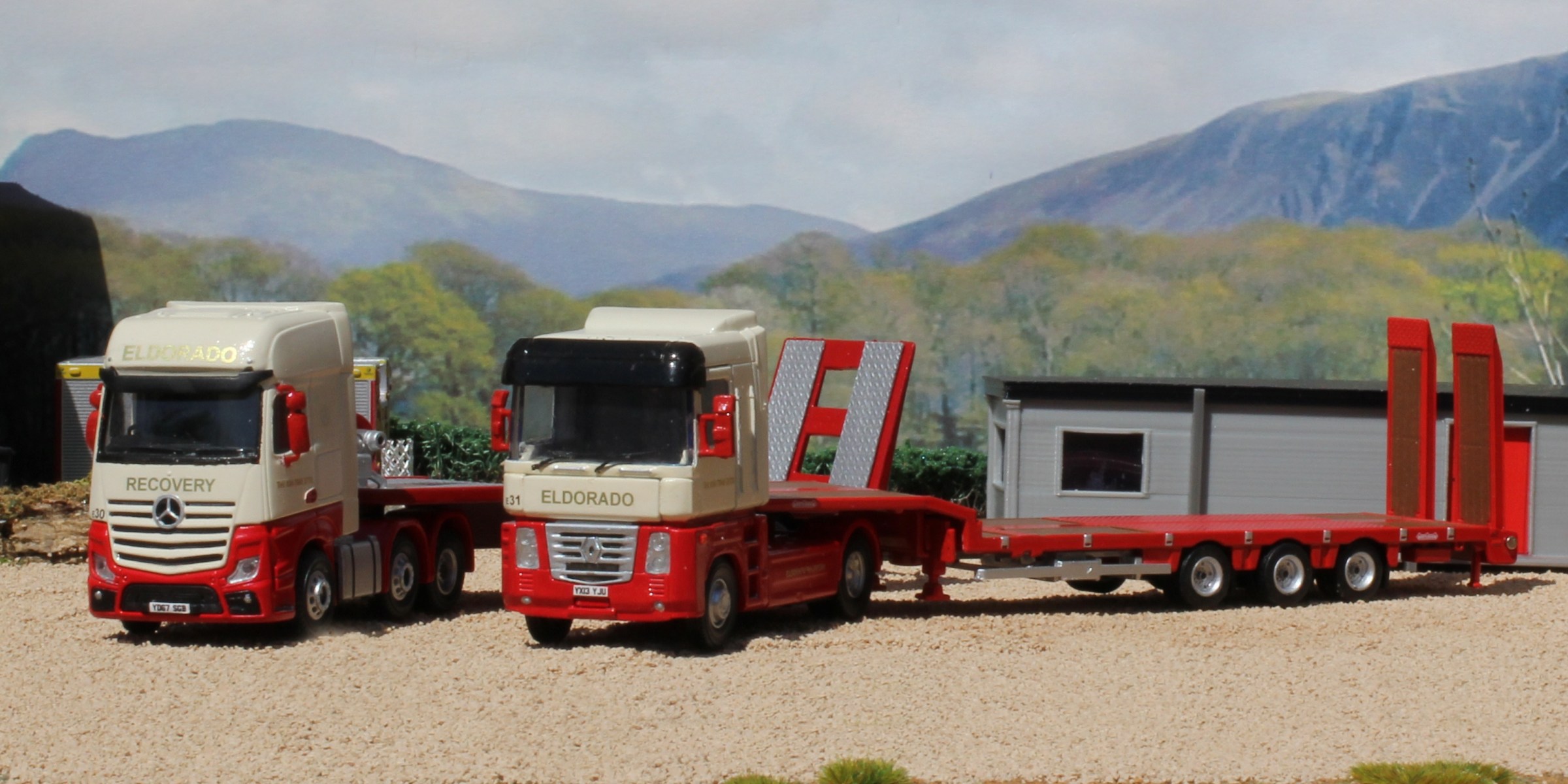 E30 (left) and E31. E30 (Actros MP4) was seen earlier. E31 is a Renault Magnum 460DXI, new in 2013, and acquired in 2020. The trailer is a 3-axle Nooteboom.
