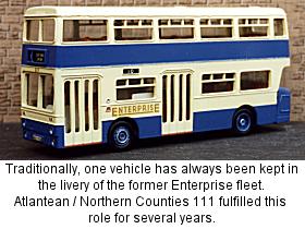 The Atlantean fleet peaked in 1985, when this make accounted for 82% of the double deck fleet (23 out of 28).