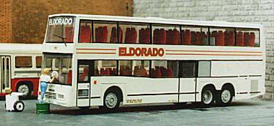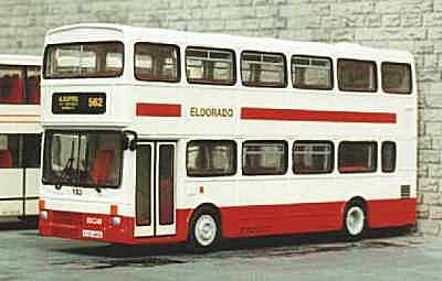 With the exception of the Neoplans and the Trident above, Eldorado has departed from its normal policy of buying new double deckers, and replaced its last Atlanteans and earliest Olympians with second-hand Metrobuses. Typical of these is 153 (E153 MKN). Some have suggested that this is just a stalling tactic until a low-floor Scania double decker is available ……