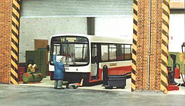 In the workshop, Scania / Wright 203 (Y203 AKN), minus front panel and doors, is being repaired, while one of the managers throws a tantrum over how one of his newest vehicles came to sustain the accident damage in the first place.